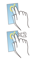 表示項目やアイコンなどを指で軽く触れて選択/実行します(タップ)。 また、表示されている画像やホームページなどをすばやく2 回続けてタップして、表示内容を拡大/縮小します(ダブルタップ)。 |